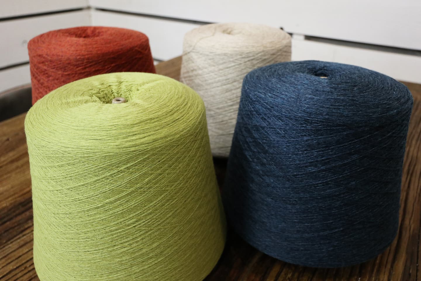 コーンの状態では糸の柔らかさはなかなか分かりづらいので、編み地になった時のさらなる感動を期待します。