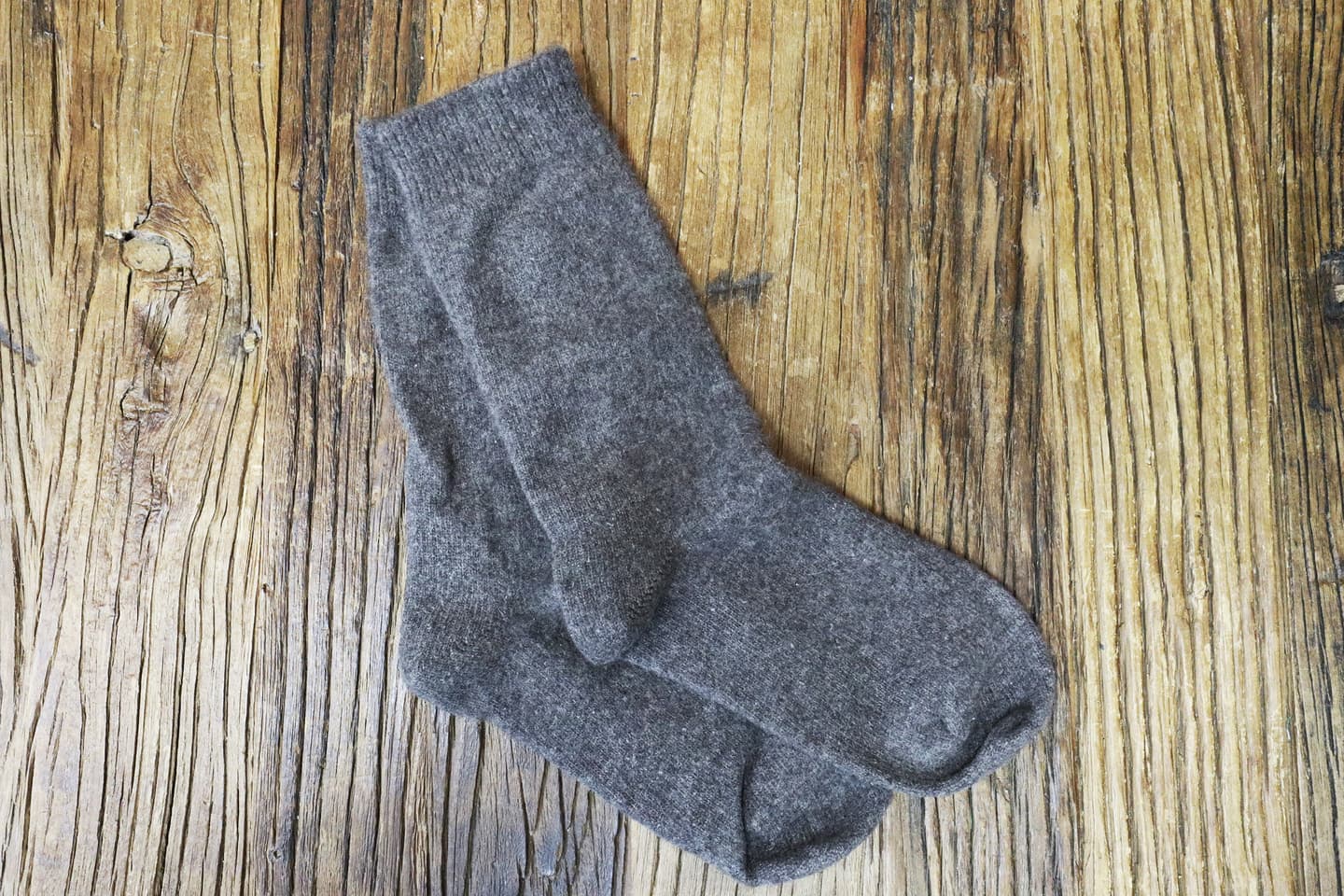 ここに1足残っているカシミヤのソックスは、15年の時を経ているのに非常に綺麗な状態です。